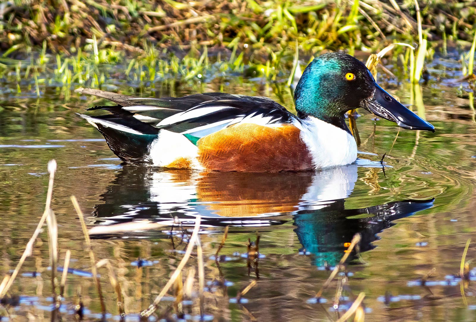 There are many different ducks. Late fall and winter offer a nice opportunity to sort through them and find unfamiliar species. Fun to watch, the big-billed northern shoveler is a great find.