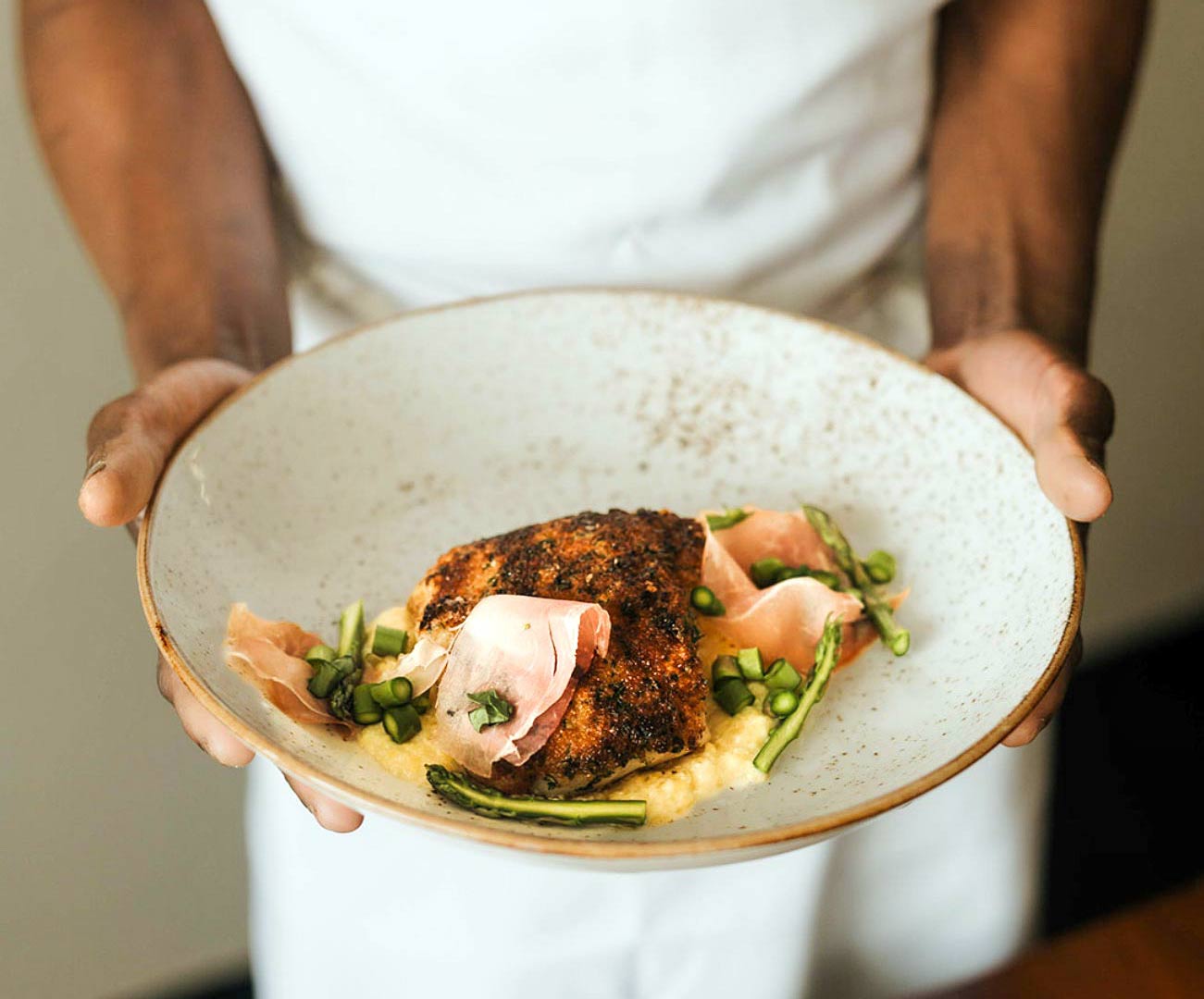 I’m 43 now, and I’ve been cooking professionally since I was 19. Born and raised in Birmingham, Alabama, I attended culinary school at Johnson & Wales University in Charleston, South Carolina. I earned my associate’s degree in culinary arts and then my bachelor’s degree in hospitality business management at the university’s Providence, Rhode Island, campus. I spent time in Europe at a Michelin-starred restaurant and then lived and worked in New York for eight years, with stints at Gramercy Tavern, Per Se, Momofuku and others.