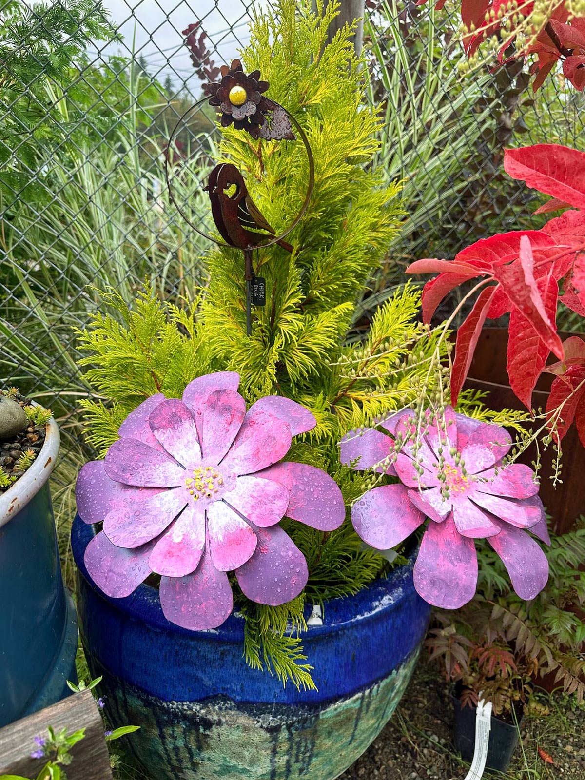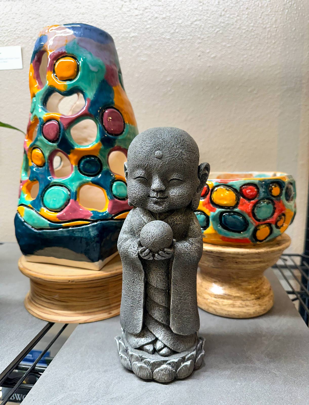 At Crazy Hill Garden & Botanicals, you’ll find the works of many local artists for yard art. Co-owner Elton Busby says, “I have a number of hand-crafted, locally made, hand-thrown ceramic pieces, in addition to many unusual plants.” There are table mosaics and bird baths at a variety of prices. You’ll also find cut-metal pieces like a birdfeeder or a lampstand between approximately $20 and $125. If you prefer gifts for home interior, there are also fiber-art flower arrangements.