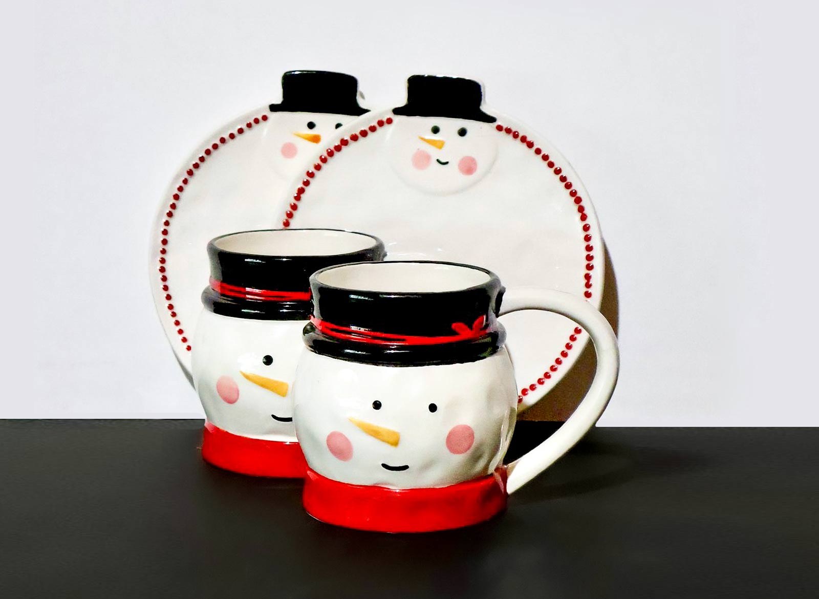 Cousin Susan tried on a hooded sweater with reindeer antlers. I ended up buying it, along with holiday mugs and saucers.