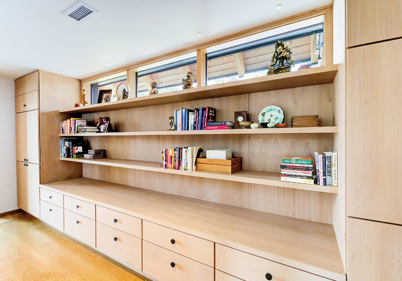Carpenters spent the better part of a year custom-milling trim, bases, vases and cabinets offsite during the framing process.