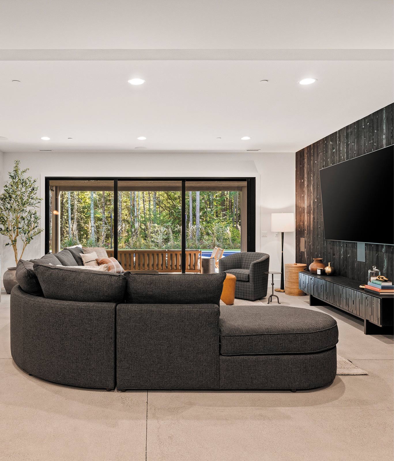 The goal of the build was to create a home that could function as an entertainment hotspot for large groups but also feel intimate and cozy for smaller groups and day-to-day family life.
